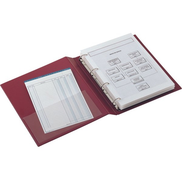 • Raccoglitore in Colpan 2000 (cartone rivestito in PVC espanso), spessore 1 mm, con meccanismo a 4 anelli (a D) e tasca interna trasparente